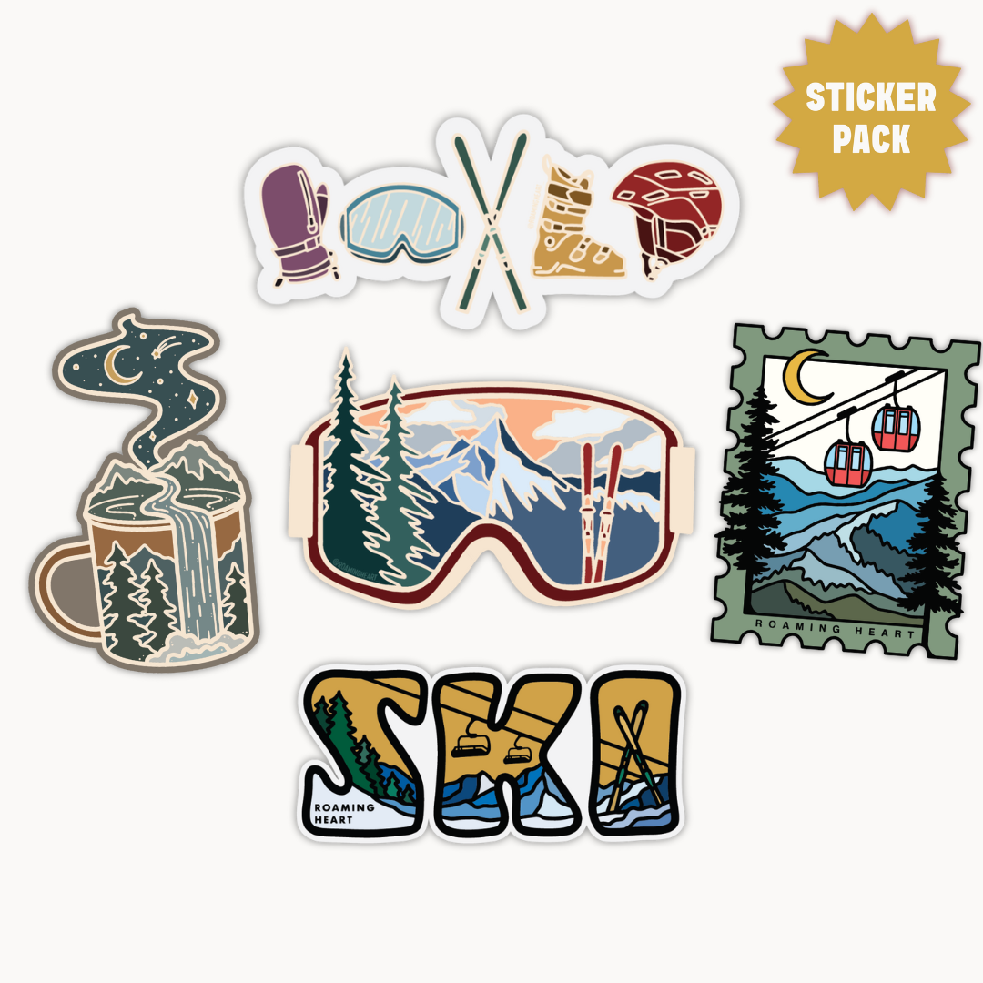 From first chair to après-ski, this 5-sticker pack celebrates everything we love about life on the mountain. Featuring die-cut designs of ski gear, snowy gondolas, goggle reflections, and that essential post-ride cup of cocoa, each sticker captures the memories, magic, and camaraderie of powder days. Perfect for those who live for winter and the people they share it with.