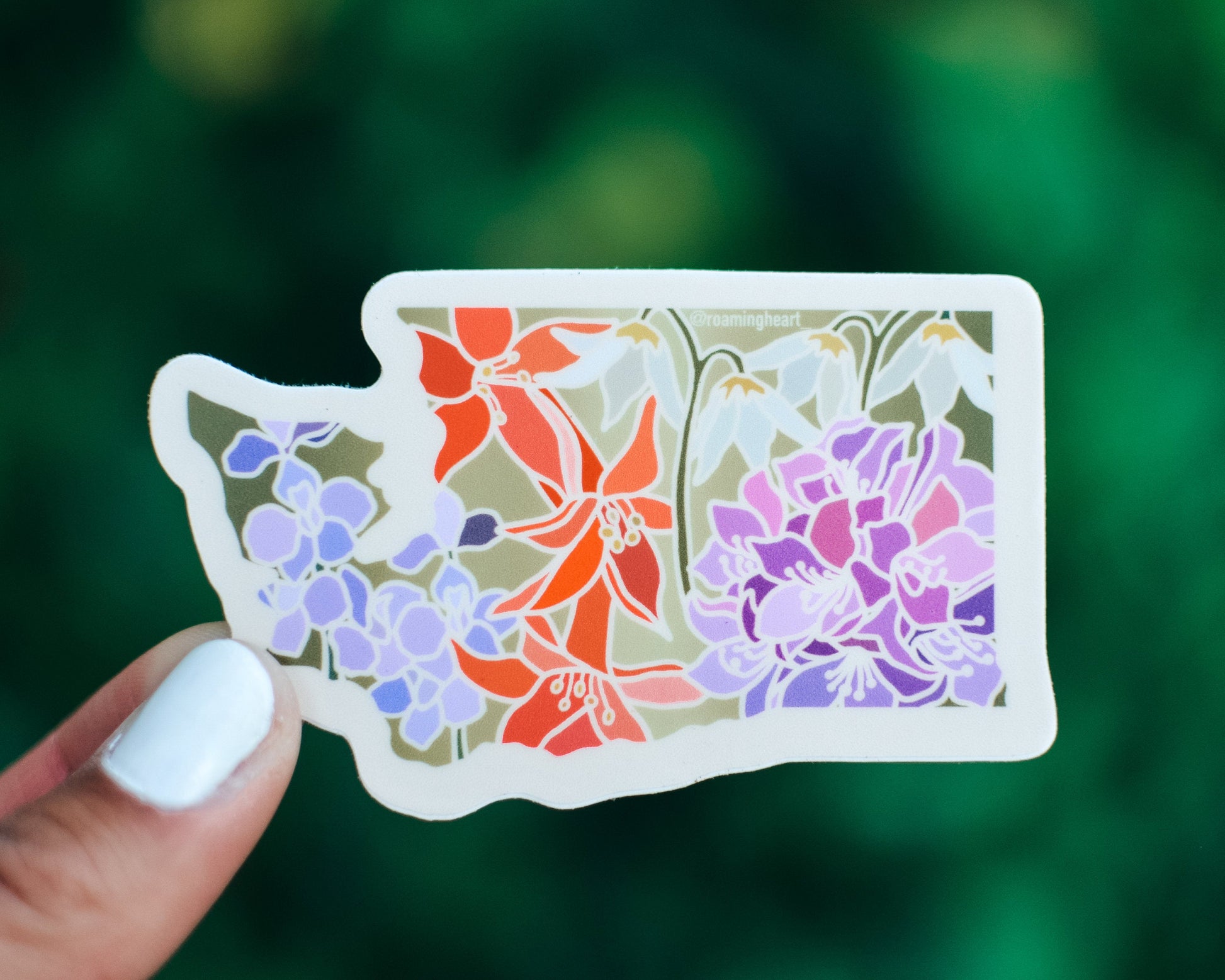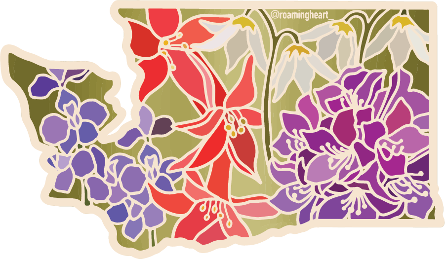 This Washington State Wildflower sticker is inspired by the beautiful wildflowers that grow throughout the state and features the beautiful state flower, Pacific Rhododenron.