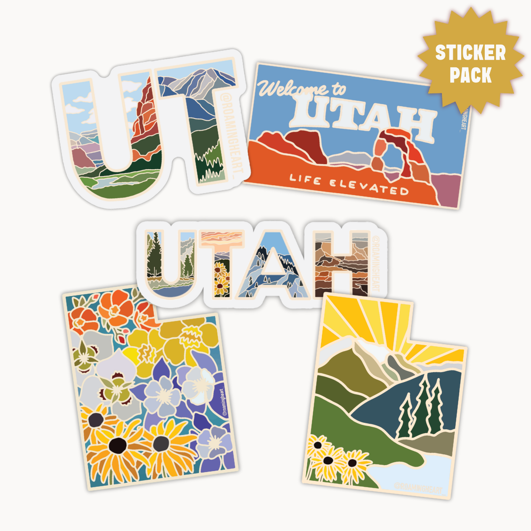 From desert arches to alpine peaks, this sticker pack captures the spirit of Utah in five unique, adventure-ready designs. Each sticker reflects a different feature that makes the state unforgettable—its iconic landscapes, natural beauty, and outdoor culture. Durable, colorful, and made to go wherever you roam, these stickers are perfect for personalizing your gear or commemorating your favorite Utah adventures.