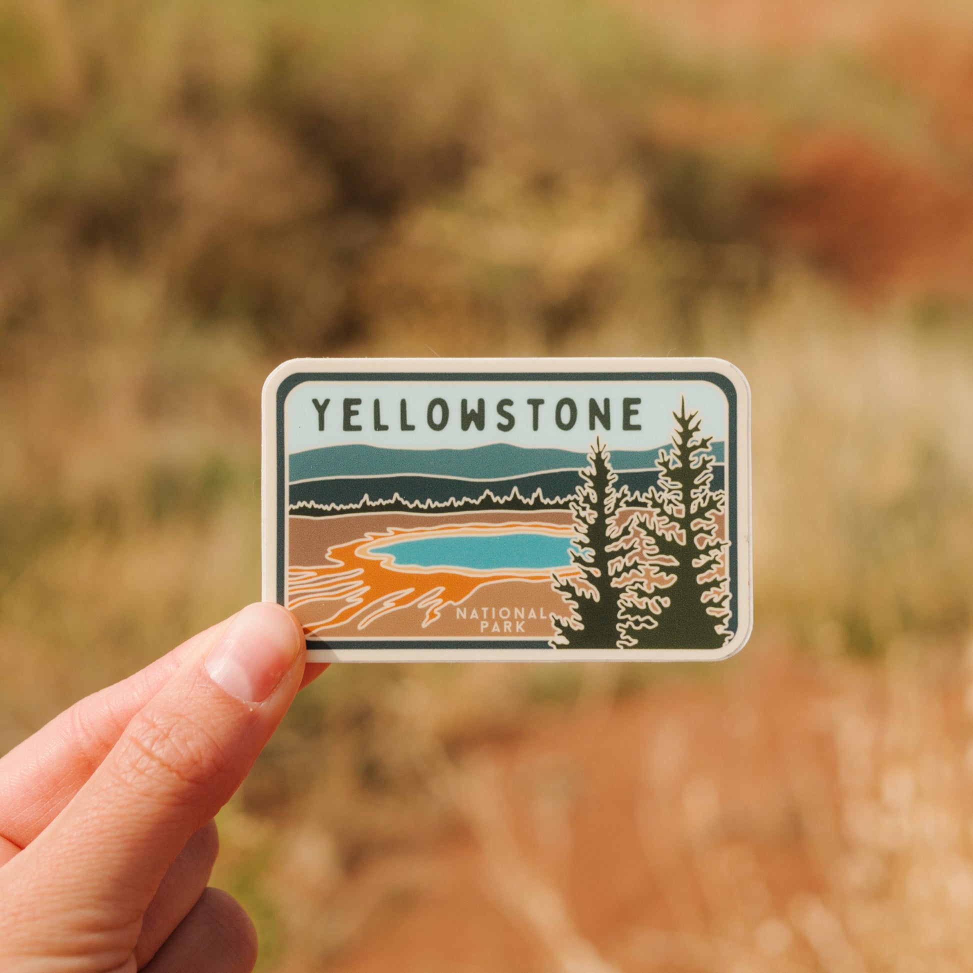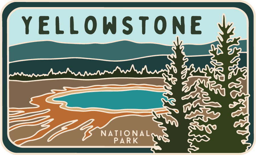 Inspired by classic road trip nostalgia, this sticker features a license plate-style design that highlights the spirit of Yellowstone's Grand Prismatic Springs. With colors and details that reflect the character of the park, it’s a fun and durable way to commemorate your visit—or inspire your next one.